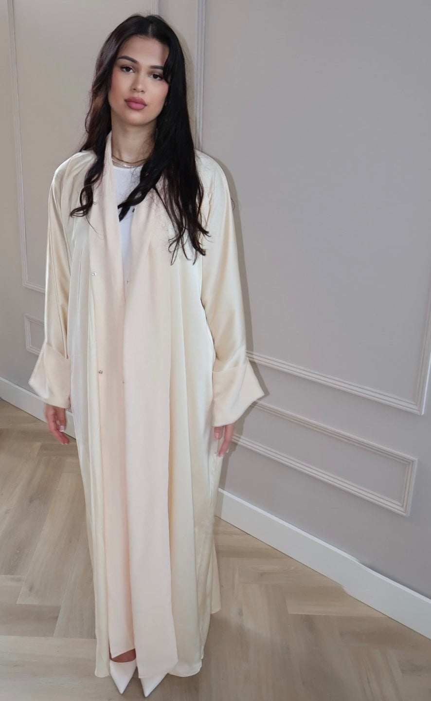 One abaya. Endless moods. Wear it open with jeans and heels for a chic daytime look, or elevate it for the evening.