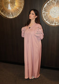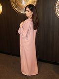 Light Pink Girly Abaya. Crafted from the softest, silky, luxurious fabric. Perfect for an matcha date. Feminine, and charming, this abaya makes every moment feel special.